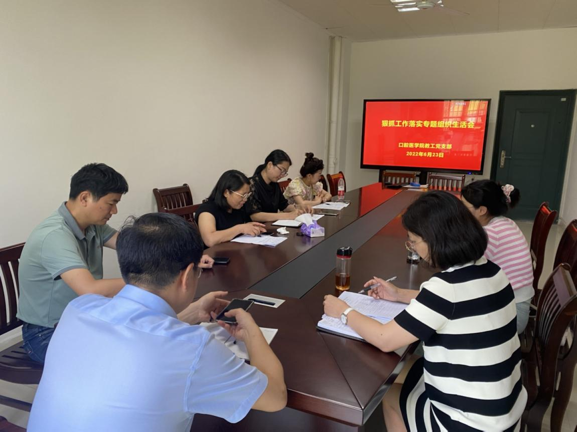 6月23日下午,beat365正版唯一官网教工党支部在1号实训楼111会议室召开“2022年上半年狠抓工作落实专题组织生活会”。副校长胡振宇出席并指导会议,会议由党支部书记罗志红主持,支部全体党员参加。