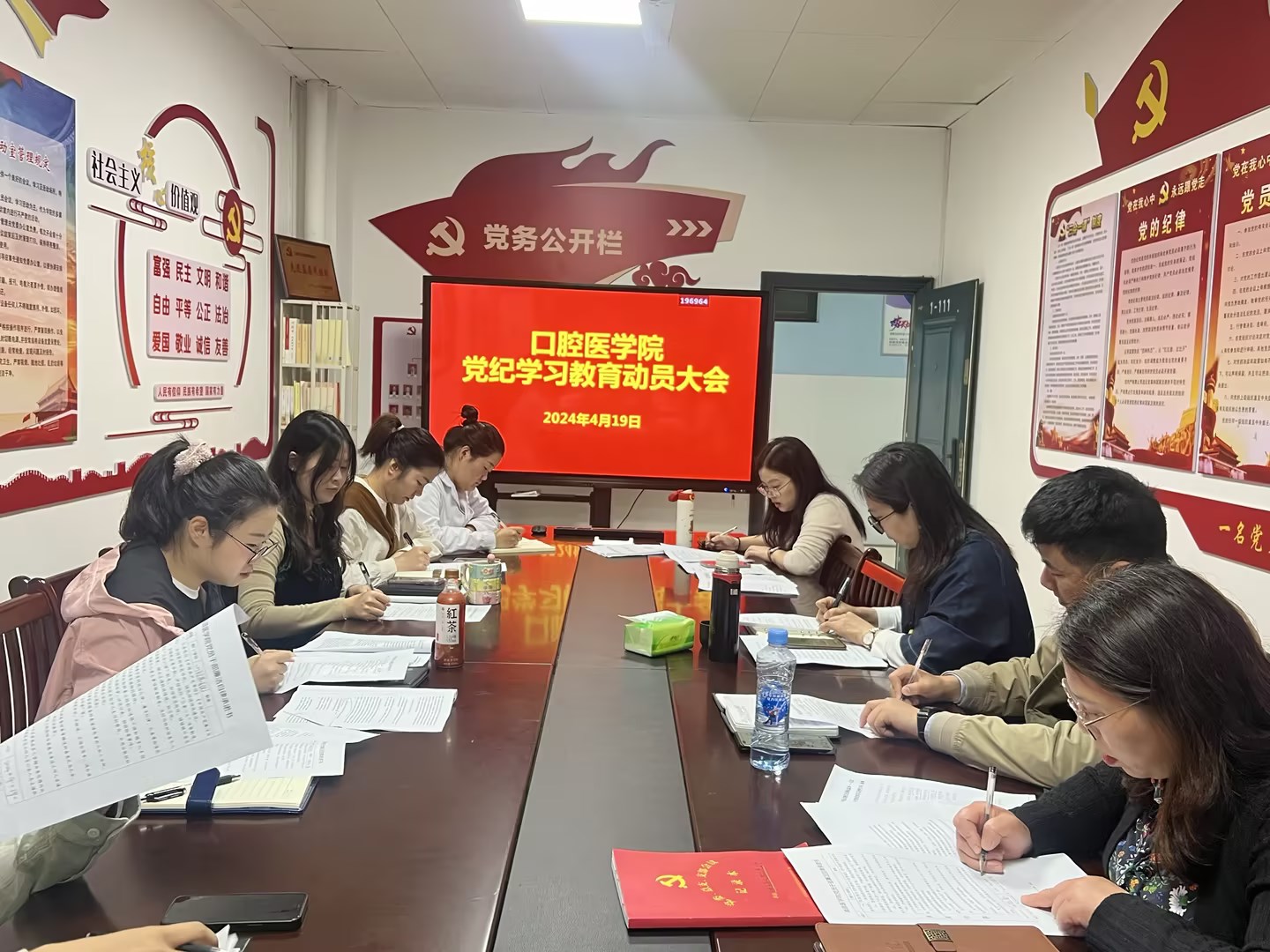 4月19日,beat365正版唯一官网召开党总支(扩大)会议,传达学习省委、省卫生健康委以及学校关于党纪学习教育有关会议精神,动员部署开展党纪学习教育工作。学院党总支副书记罗志红主持会议并讲话,学院党总支委员及各教研室主任参会。