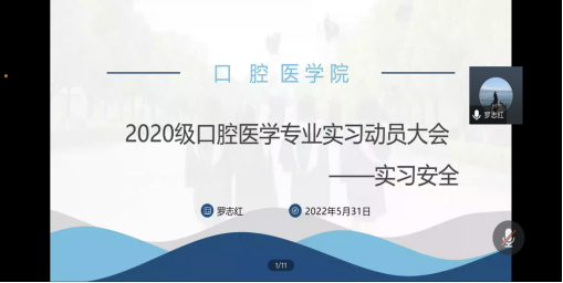 为进一步落实完善毕业生实习工作,做好20级口医学生实习管理工作,引导学生做好顶岗实习前的各项准备,推进实习工作的顺利进行,在常态化防控疫情下,口腔医学院于5月31日通过腾讯会议方式召开了2022年口腔医学专业实习动员大会。