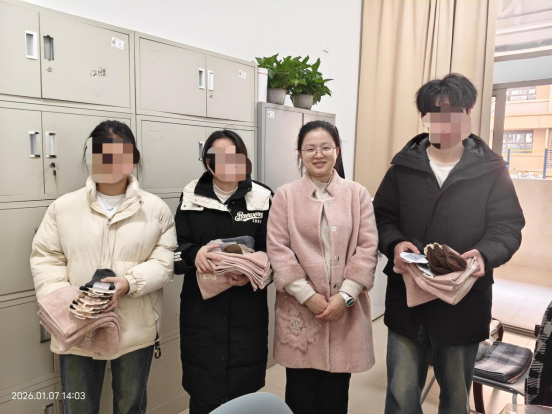 学院辅导员与同学们亲切交谈,详细询问了他们的学习情况、生活状况以及目前存在的困难,鼓励他们要树立信心,勇敢面对生活挑战,在大学期间珍惜时光、勤奋学习,用知识改变命运。同学们接过崭新的袜子和毛巾,脸上洋溢着温暖的笑容,纷纷表示感受到了学院大家庭的温暖,将把这份关怀转化为学习的动力,不辜负学院的期望。