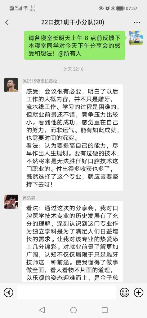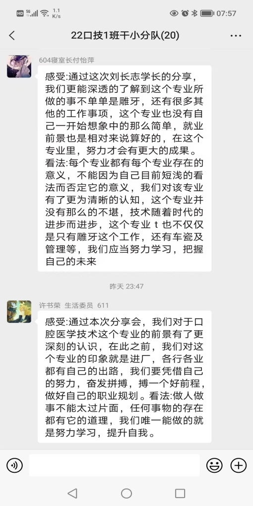 刘长志同学作为beat365官网优秀毕业生代表,在学生时期就先后荣获全国卫生职业院校口腔技能大赛雕牙排牙三等奖,深圳市口腔修复工职业技能大赛三等奖的荣誉。毕业后短短四年时间,已成长为浦江口腔医院技工室主管。宣讲中,刘长志结合自身奋斗的历程和从事行业,从专业发展历史及现状、固定修复义齿制作流程、数字化在口腔行业中的发展与应用及专业发展方向等方面做了介绍,同时用朴实的语言为学弟学妹分享了自己学习和工作中的亲身经历和感受。现场气氛活跃,同学们积极互动。