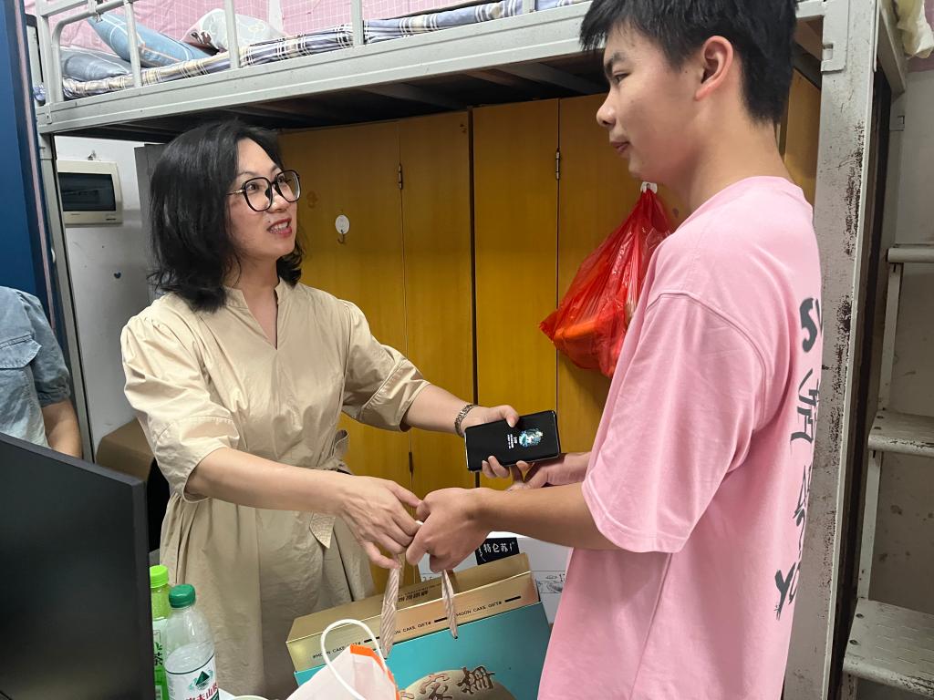 9月12日,罗志红带队深入学生宿舍看望家庭困难学生,送上诚挚的节日祝福,并亲切询问学生的家庭状况以及在校期间学习生活情况。同时,鼓励同学们始终保持勤奋拼搏的精神和吃苦耐劳的品质,以专业知识不断充实自己,确保顺利完成学业。