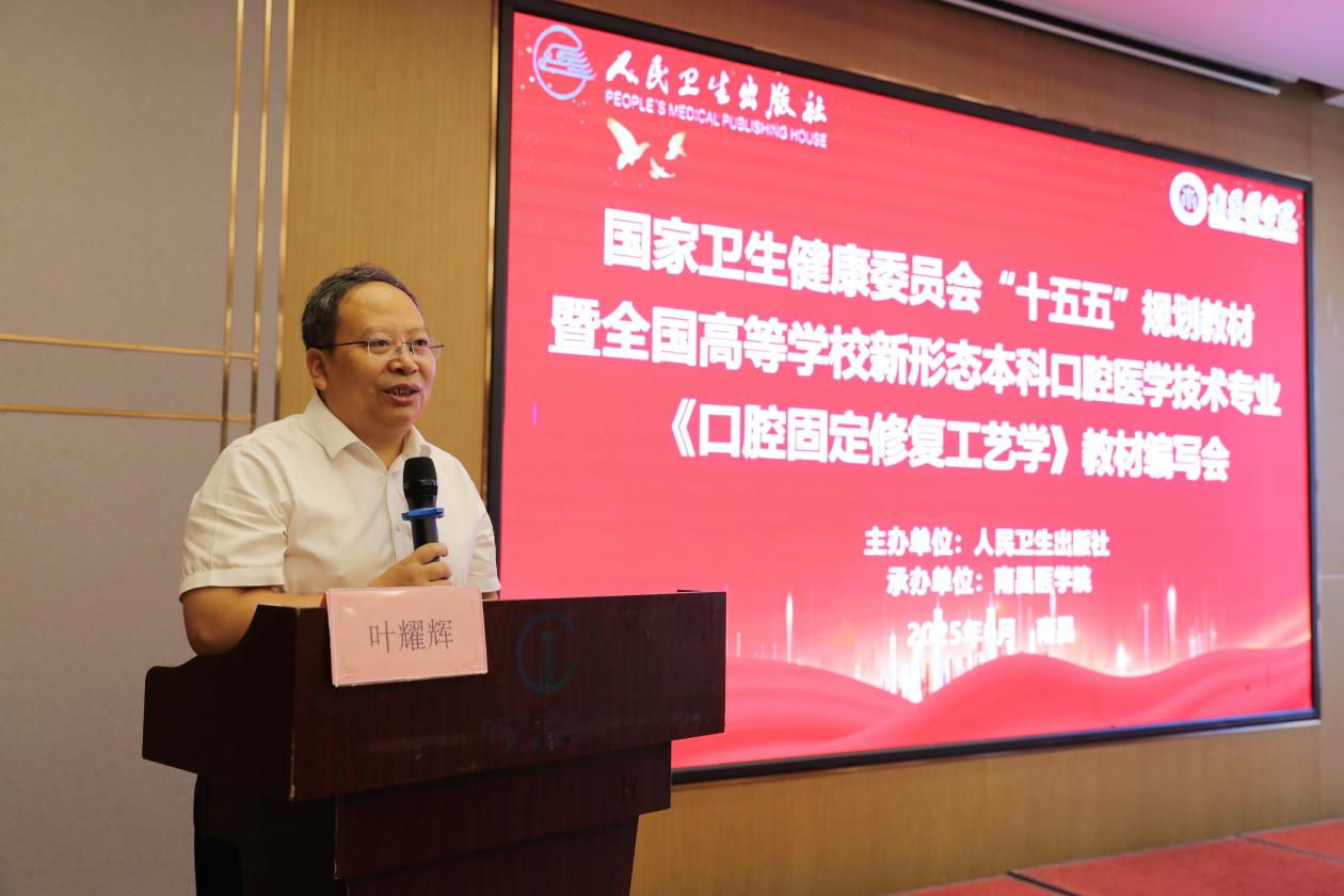 6月16日至18日,由人民卫生出版社主办,南昌医学院承办的国家卫生健康委员会“十五五”规划教材暨全国高等学校新形态本科口腔医学技术专业《口腔固定修复工艺学》教材编写会在我校召开。beat365正版唯一官网党委委员、副校长叶耀辉出席会议,来自全国30余所知名高校及行业专家学者齐聚一堂,共同研讨教材编写的相关事宜。
