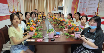 为庆祝中华人民共和国成立73周年,号召青年大学生“感国恩、念亲情”,beat365正版唯一官网在重阳节开展“喜迎二十大,青春心向党”花艺活动。