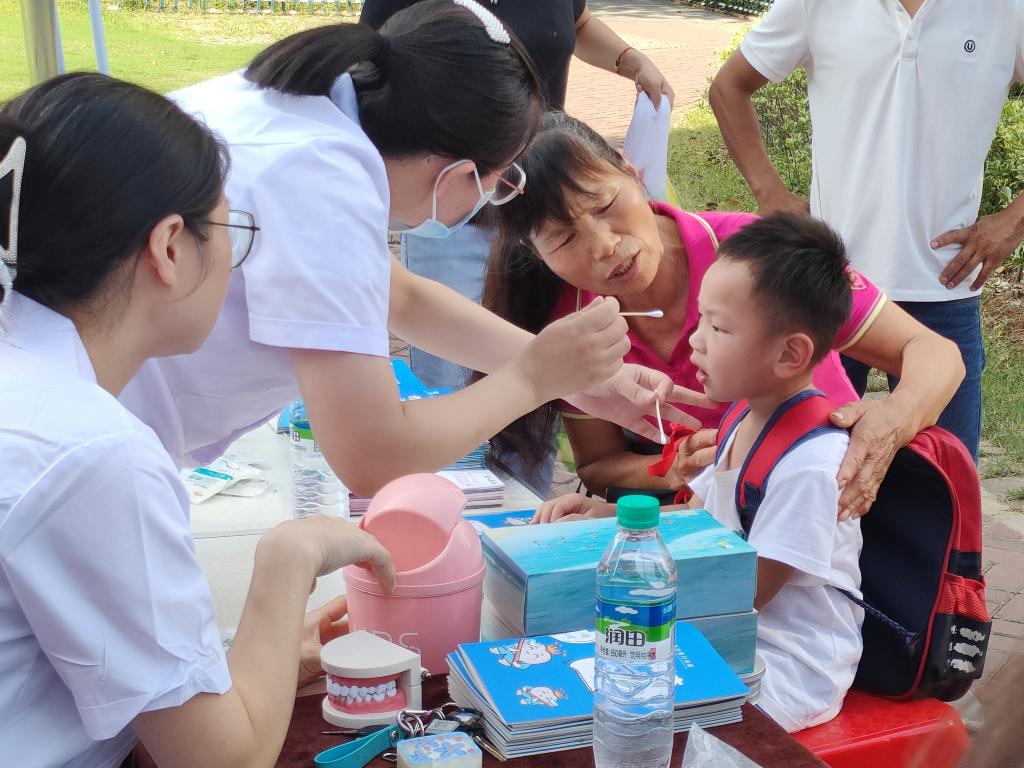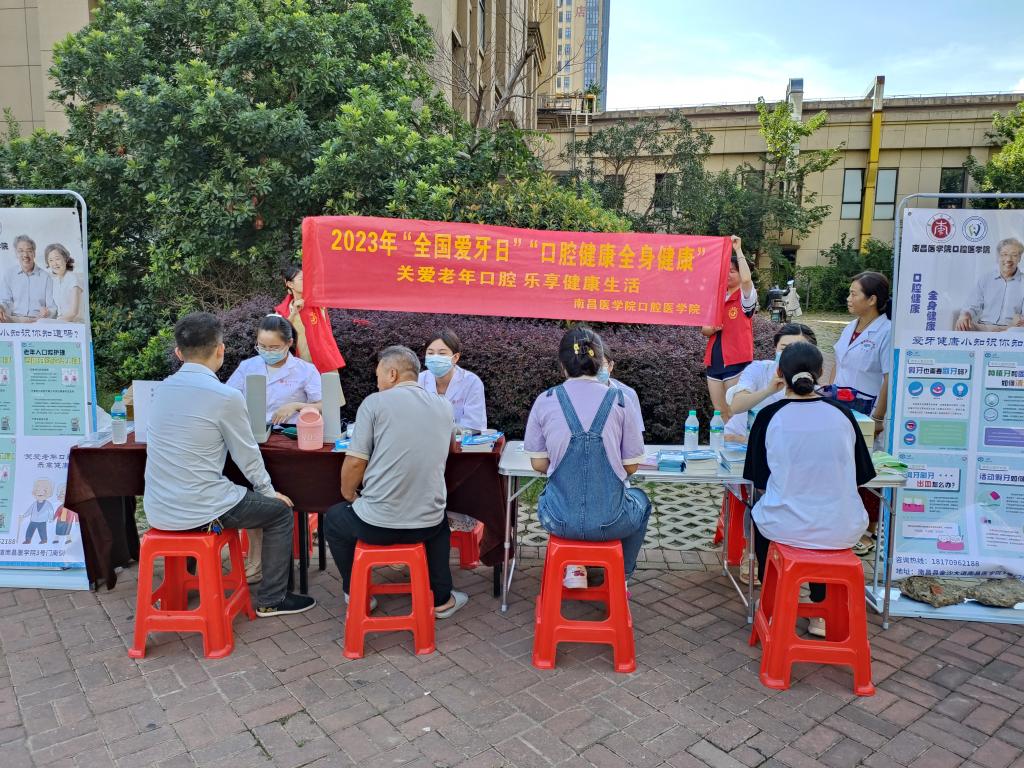 今年全国爱牙日的主题为“口腔健康 全身健康”,副主题为“关注老年口腔 乐享健康生活”。在南昌县力高澜湖郡社区,南昌县疾病防控中心领导亲临现场指导,beat365正版唯一官网教师和学生志愿者们向社区老人、来往群众和小朋友发放了宣传资料,“一对一”为老人进行测量血压、口腔义诊,详细讲解口腔健康知识,现场演示正确的刷牙方法,广泛普及爱护牙齿的重要性,并免费发放小礼品。