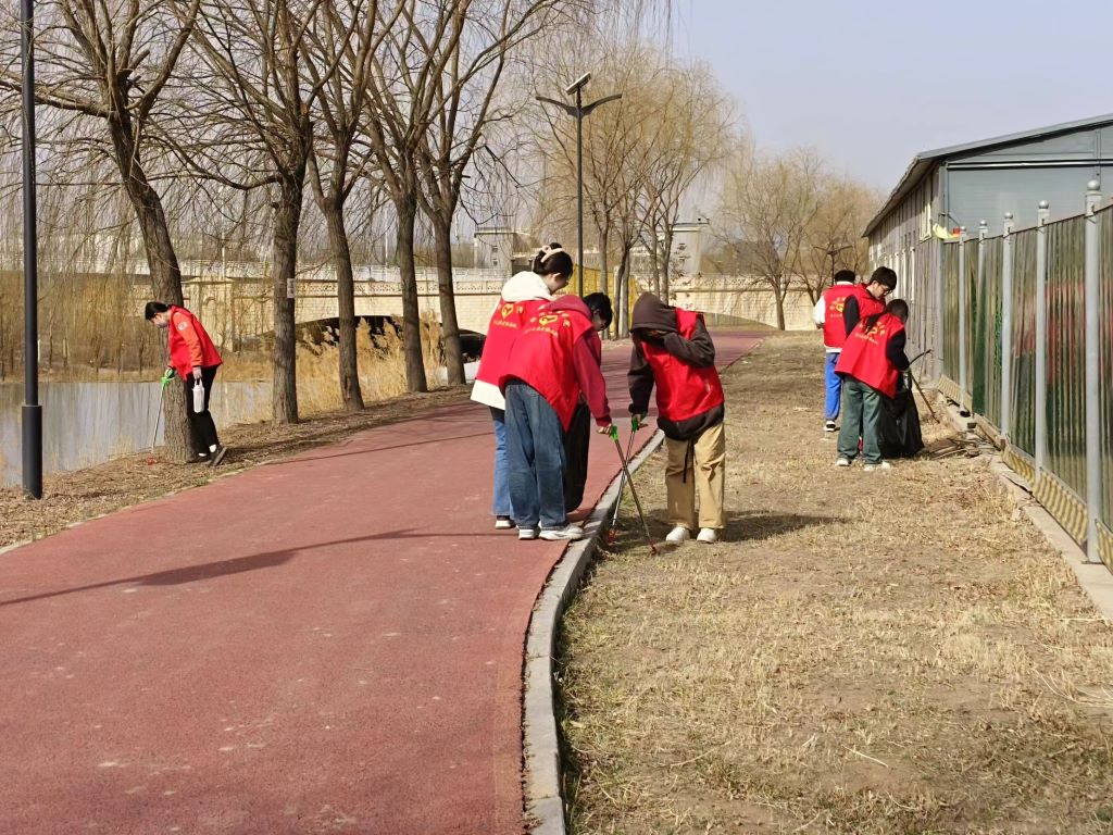 “河水伴我河边走,小桥从我门前过;河水清清心里乐,河道污染要不得。”大家分工明确,同时行动,手拿扫帚、铁铲、铁钳、垃圾袋等清洁工具对南门河流沿河区域进行清扫和捡拾垃圾。经过志愿者们的辛勤努力,河流周边树林的卫生以及河流面貌焕然一新,既减少了河道污染,又保护了河岸树木,用干净、舒适的卫生环境装点校园。